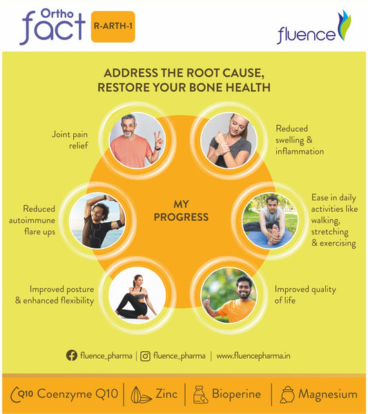 Discover the power of ORTHOFACT- formulated with anti-inflammatory and pain -relieving properties that help reduce pain, tenderness, swelling, redness and stiffness.Our blend of nutrients and antioxidants not only protects against cartilage damage but also provides essential lubrication, strengthening your bones and joints to prevent further complications and recurrence.
